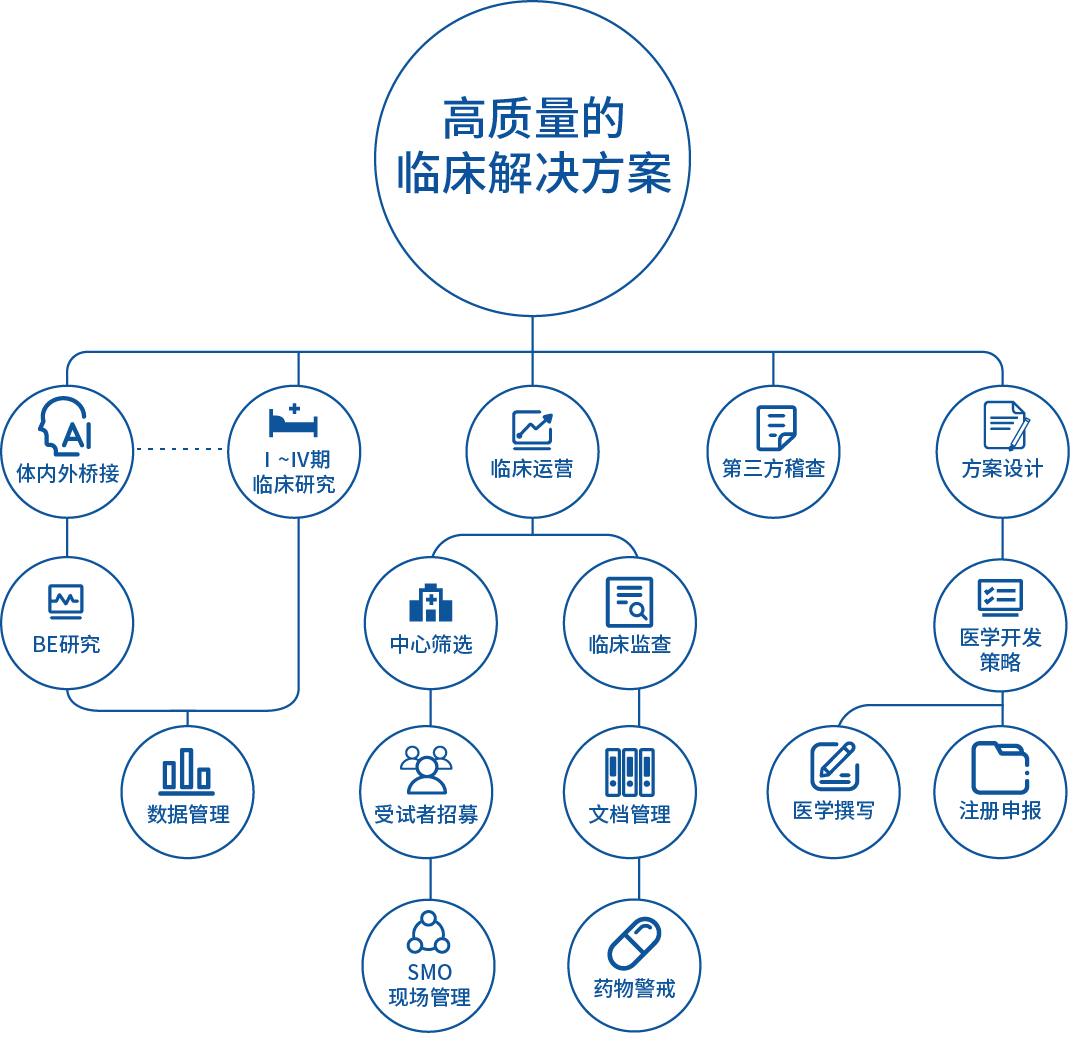 新領先臨床版塊(深藍海(鄭州))擁有15年臨床研發經驗積累,300余人高專業水準的臨床服務團隊,下設醫學部、臨床運營部、數據部、藥物警戒部、質量控制委員會、藥政部、項目管理部等部門。依托于新領先CXO服務體系,創新的“交互式”臨床服務模式,建立專項政府引導基金,能夠為創新企業優質項目提供不同階段的投融資,助力創新項目快速推進;基于前期項目臨床數據資料,定向指導醫學方案設計及開發;基于強大的定量藥理學及體內外橋接團隊,針對特定疾病和特定人群進行系列研究,支持模型引導的新藥臨床開發新模式建立和新藥注冊科學創新,最終改善新藥臨床開發效率。
