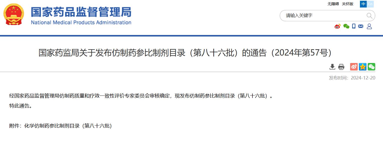 政策法規 || 仿制藥參比制劑目錄(第八十六批)(附法規概覽12.16-12.20)