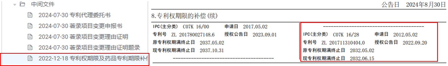 藥品專(zhuān)利期限補(bǔ)償案例: