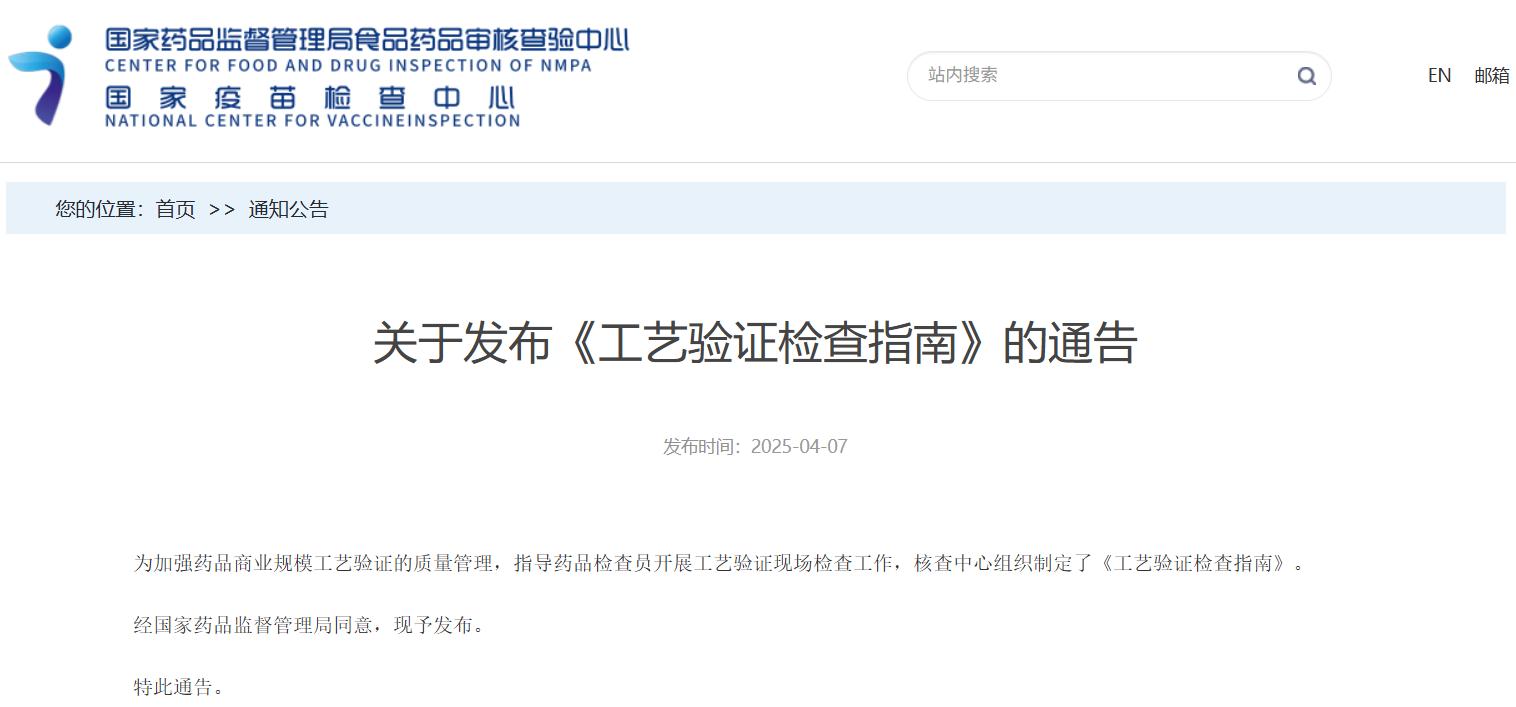 為加強藥品商業規模工藝驗證的質量管理,指導藥品檢查員開展工藝驗證現場檢查工作,核查中心組織制定了《工藝驗證檢查指南》。經國家藥品監督管理局同意,現予發布。