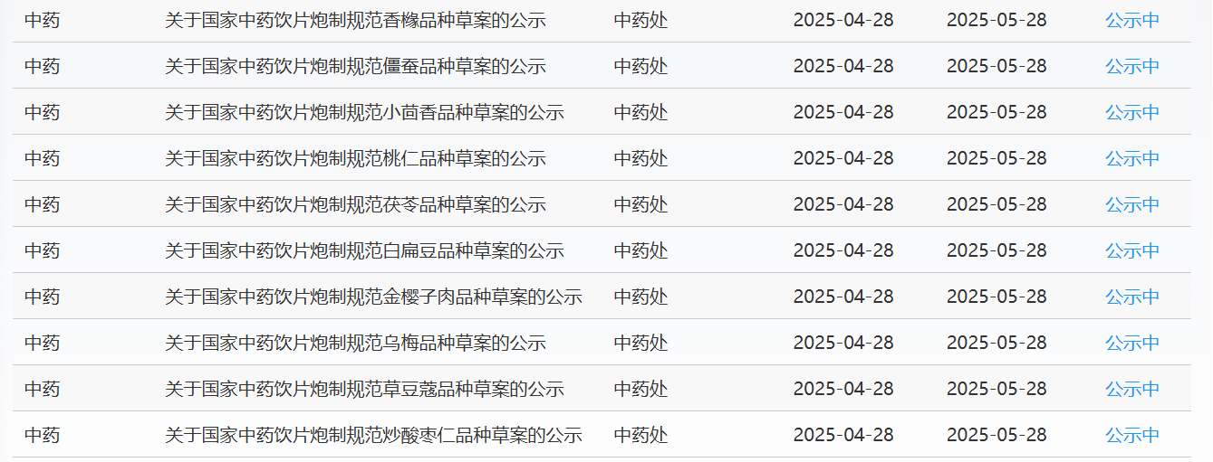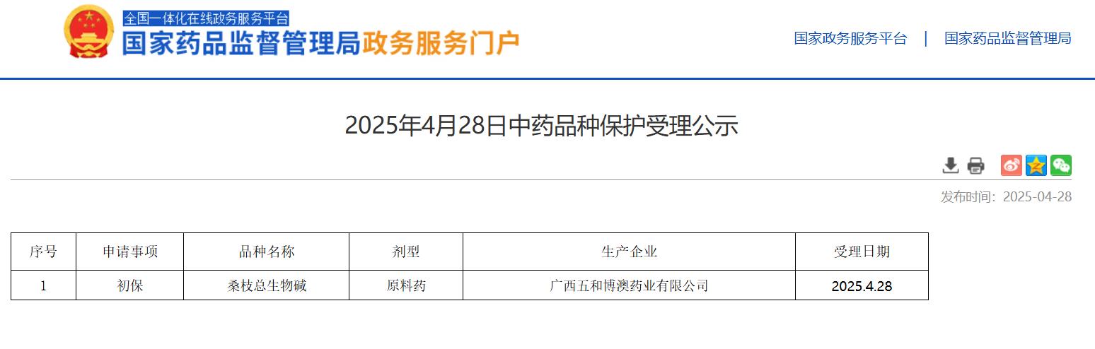 2025年4月28日中藥品種保護受理公示