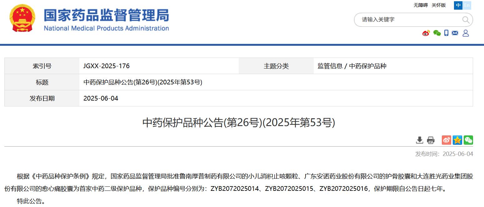 中藥保護(hù)品種公告(第26號)(2025年第53號)