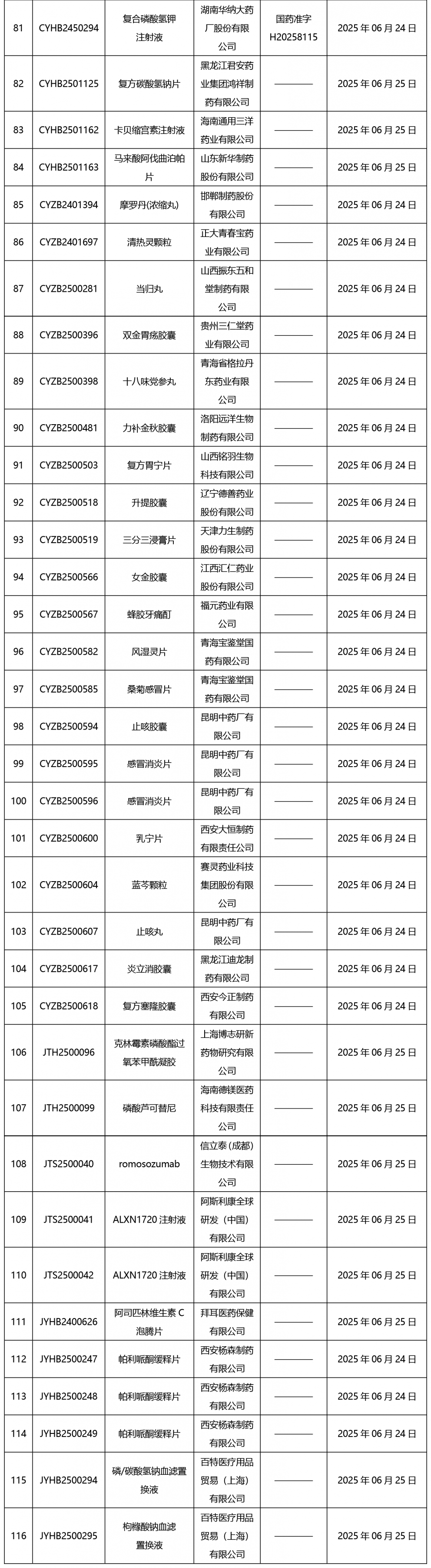 本周(截止到6月27日17:00)共發布藥品批準證明文件送達信息116個。