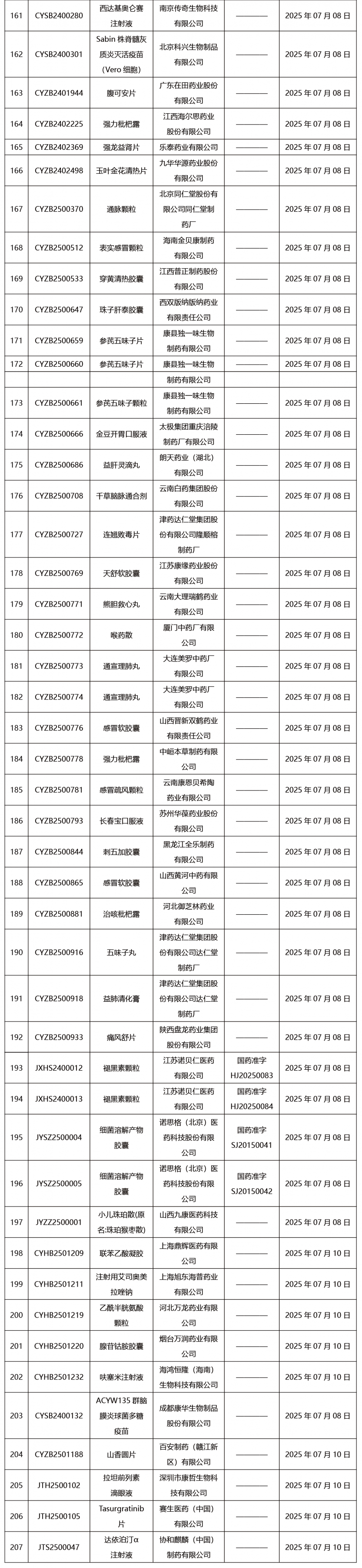 本周共發布207項藥品批件。