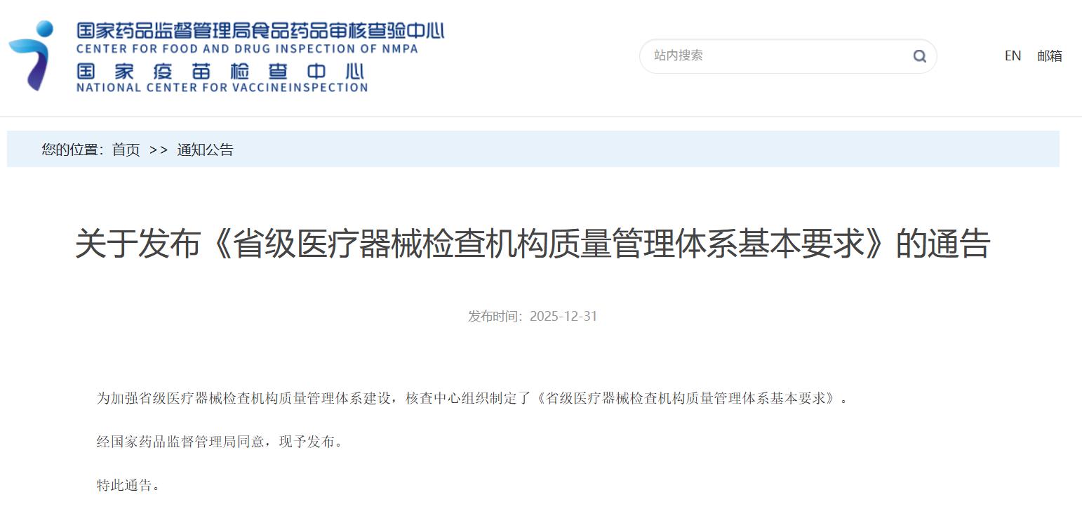 關于發布《省級醫療器械檢查機構質量管理體系基本要求》的通告