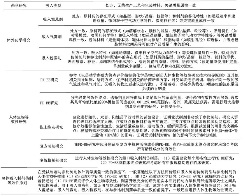 縱觀各國關于吸入制劑指導原則及指南要求,全球已基本達成共識,主要涉及無菌保障、霧化特性質量研究和生物等效性研究三個方面,匯總如下: