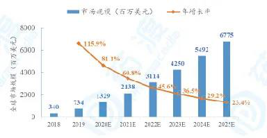 如圖所示,2019年CAR-T全球5市場規模為7.34億美元,預計在未來五年間,CAGR將達到46.1%,2025年市場規模預計可達到67.75億美元。