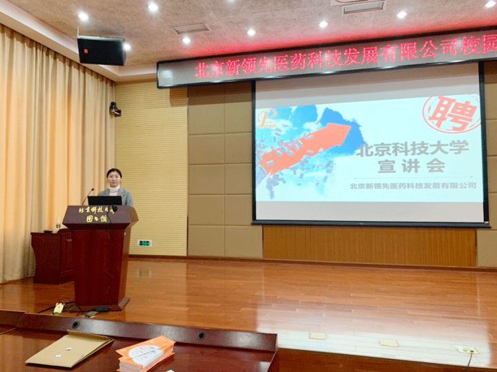 目前,已在北京化工大學和北京科技大學開展了宣講。北京化工大學的宣講會現(xiàn)場有北京新領(lǐng)先醫(yī)藥副總裁張翔先生為此次宣講會致辭,有學姐進行經(jīng)驗分享,公司宣傳片的播放吸引在場同學,同學們積極提問,人力資源部總監(jiān)于雪麗耐心解答,現(xiàn)場氣氛活躍。