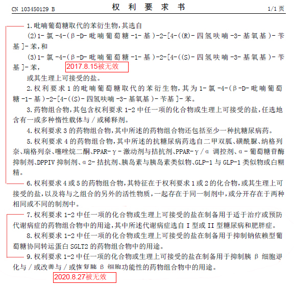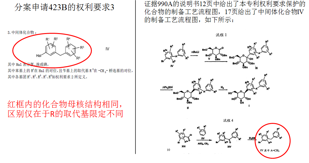?分案2:423B權1保護涵蓋恩格列凈在內結構通式化合物,保護范圍大于分案581和129,從權2保護制備路線;
