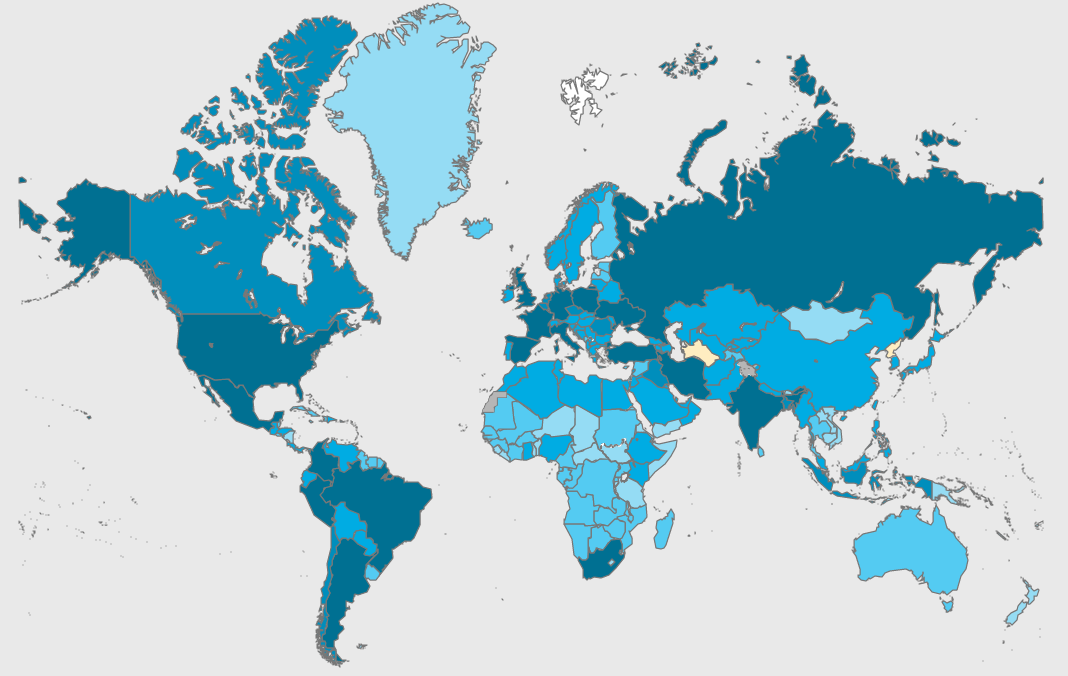 ▲ 新冠確診病例地區分布圖(圖源:WHO)
