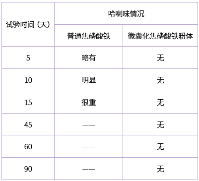 微囊化焦磷酸鐵粉體可大大延長含植物蛋白類食品出現哈喇味的時間。