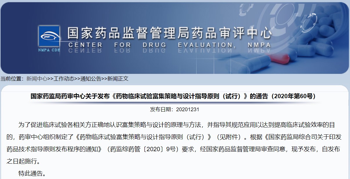 關于發布《藥物臨床試驗協變量校正指導原則》的通告(2020年第65號)
