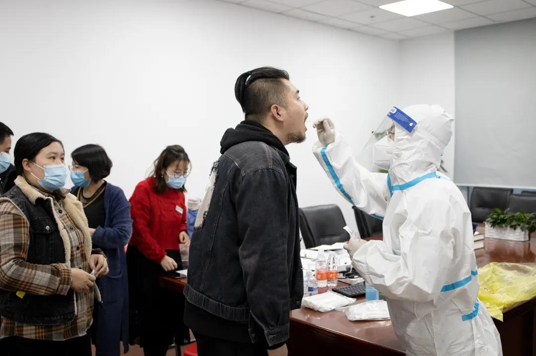 為方便低風險區員工回家過年,新領先預約了核酸檢測上門服務,組織集體檢測,不用到醫院排隊。