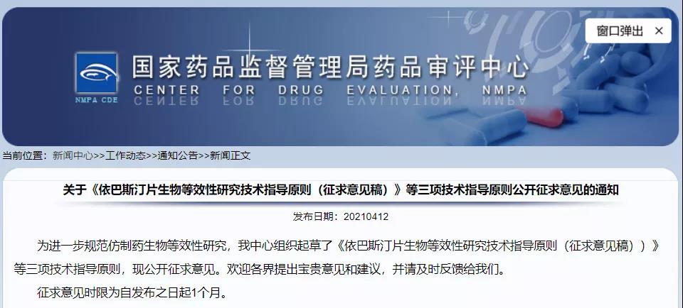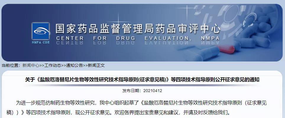 關于《依巴斯汀片生物等效性研究技術指導原則(征求意見稿)》等三項技術指導原則公開征求意見的通知