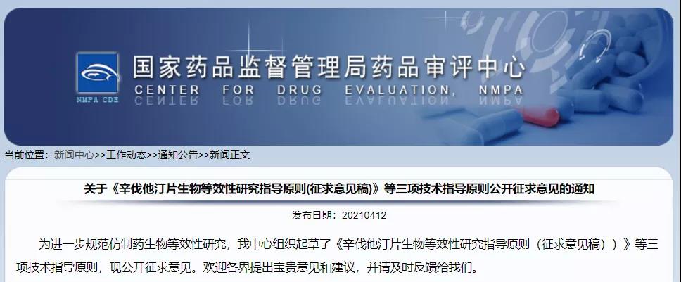 關于《辛伐他汀片生物等效性研究指導原則(征求意見稿)》等三項技術指導原則公開征求意見的通知