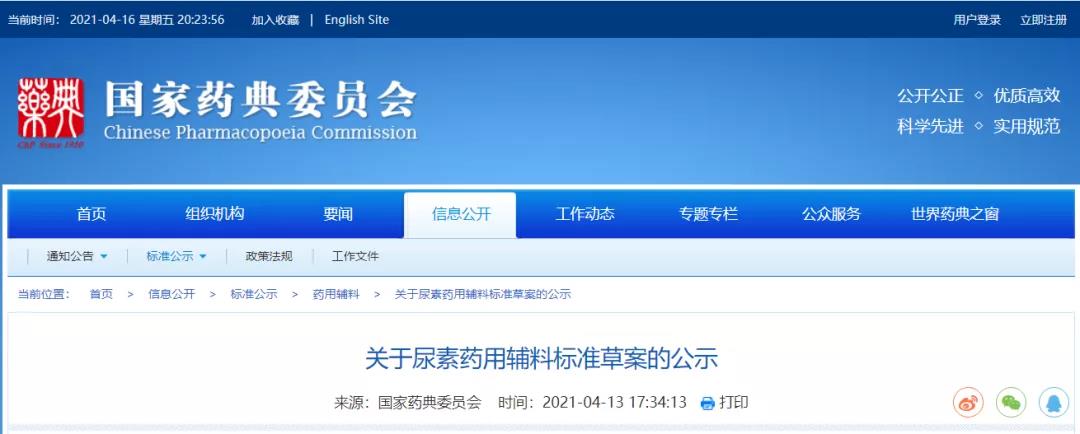 本周尿素藥用輔料標準草案標準草案公示,發布關于實行《中國藥典》藥包材標準品種監護人管理的通知。
