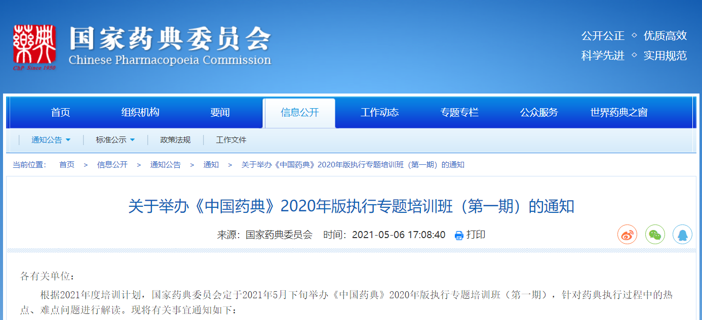 關于舉辦《中國藥典》2020年版執行專題培訓班(第一期)的通知