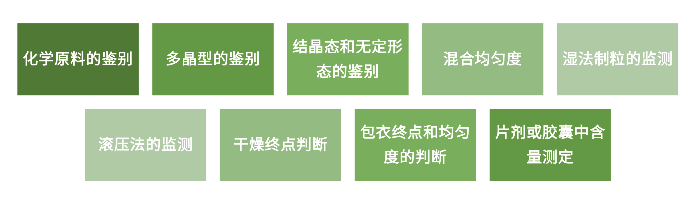 NIR在固體制劑生產領域的主要應用包括: