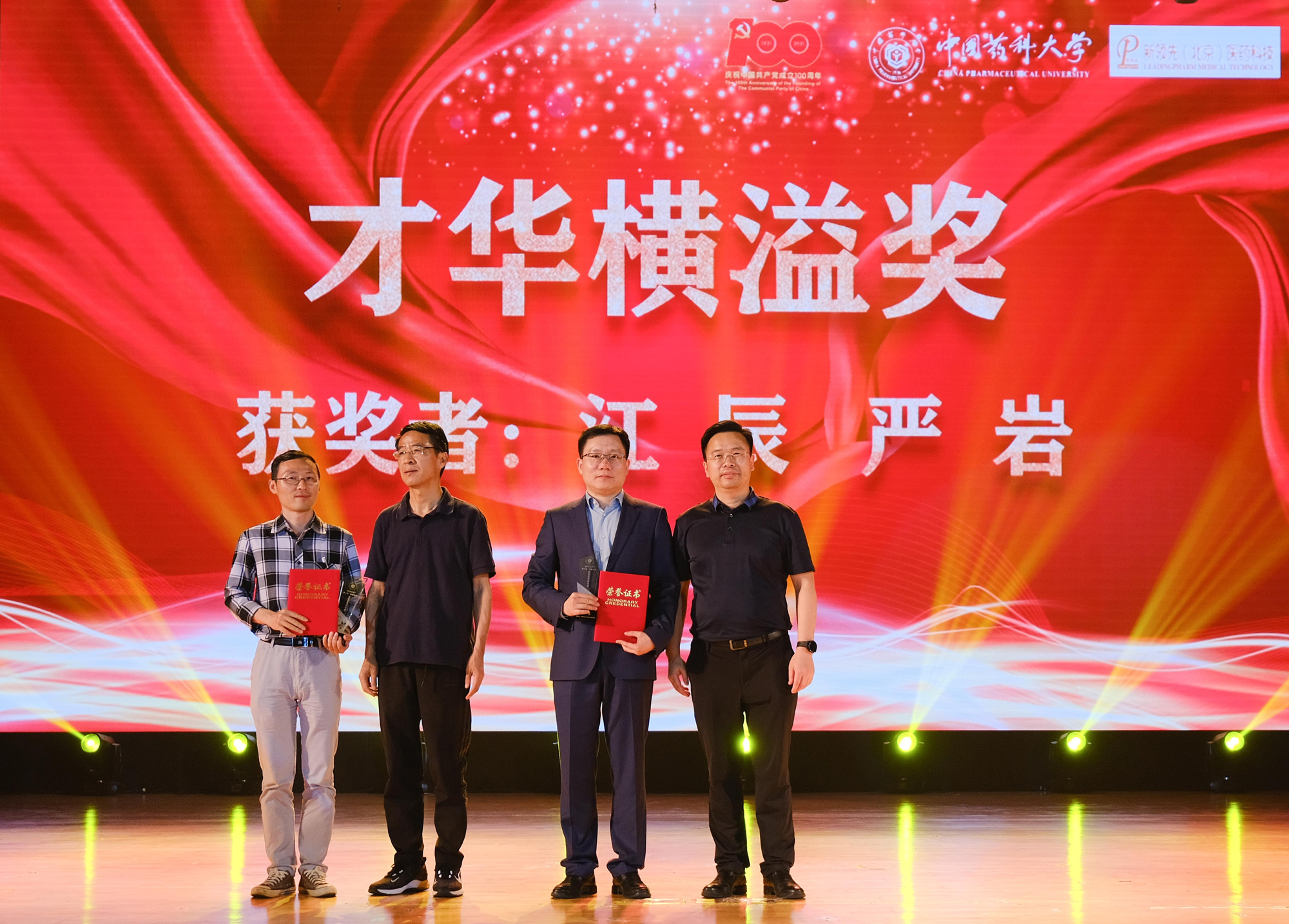 中國藥科大學黨委副書記、副校長王正華老師,黨委常委、組織部部長陳永法老師,黨委常委、宣傳部部長陳衛忠老師等眾多藥科大學師生參加此次晚會。新領先醫藥人力資源總監于守剛先生作為新領先代表受邀參加。