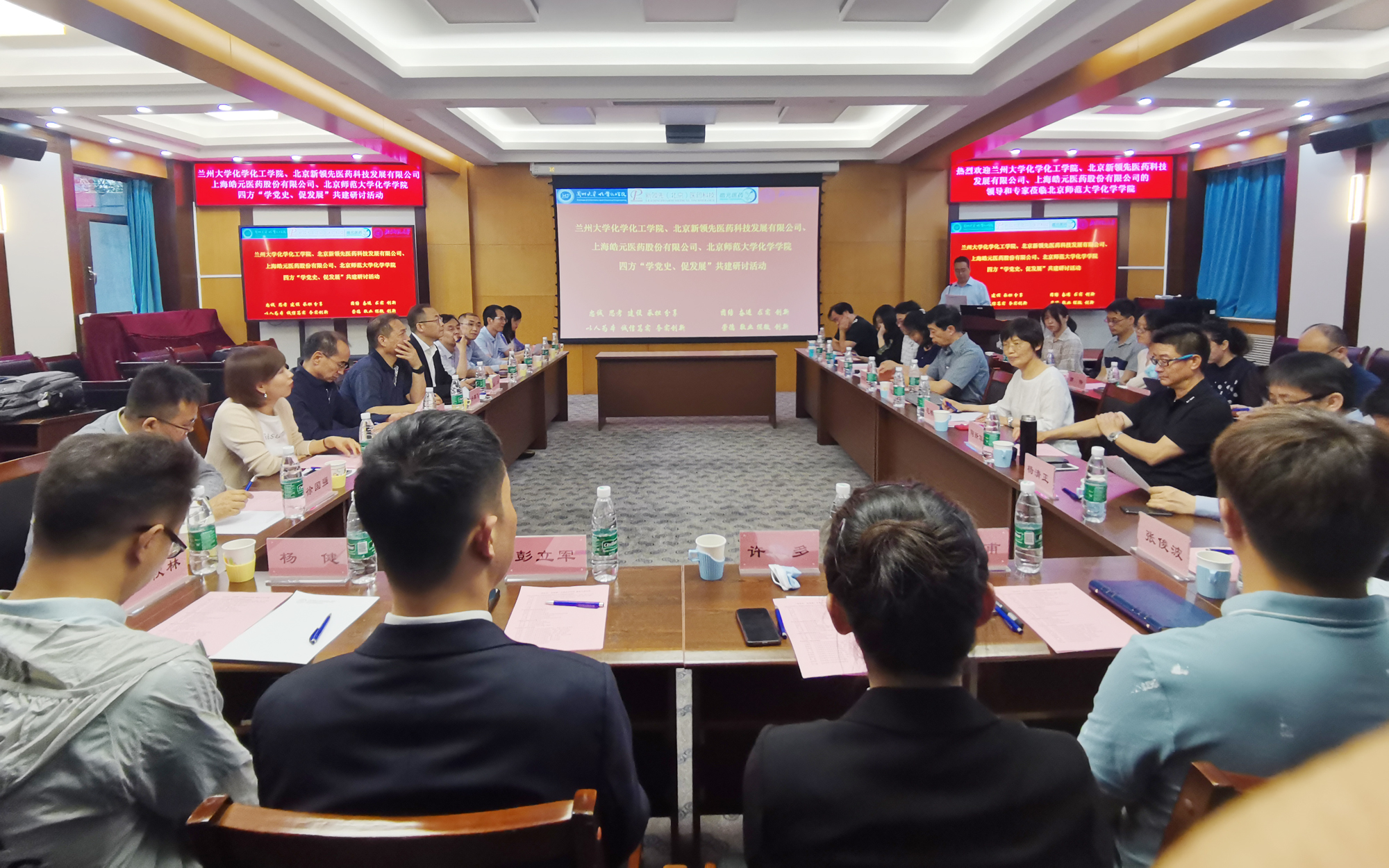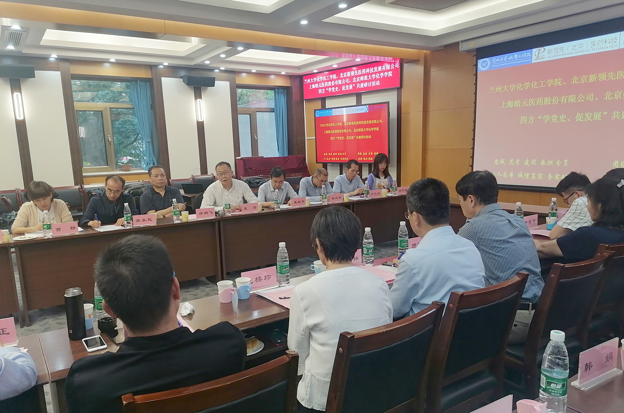 北京師范大學化學學院黨委書記盧忠林教授、院長范樓珍教授,蘭州大學校長助理和科學技術發展研究院執行院長許鵬飛教授、化學化工學院院長梁永民教授、功能有機分子化學國家重點實驗室主任王為教授,北京新領先醫藥董事長陶新華先生、副總裁董穎博士,上海皓元醫藥首席運營官彭立軍博士等眾多專家領導出席了此次黨建活動。