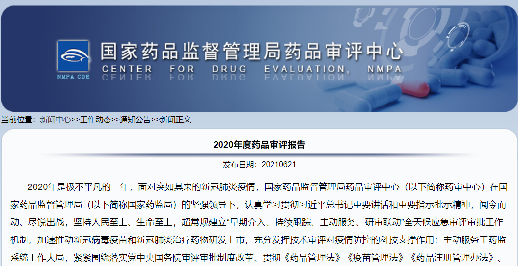 2020年度藥品審評報告發布!全年審評通過創新藥20個