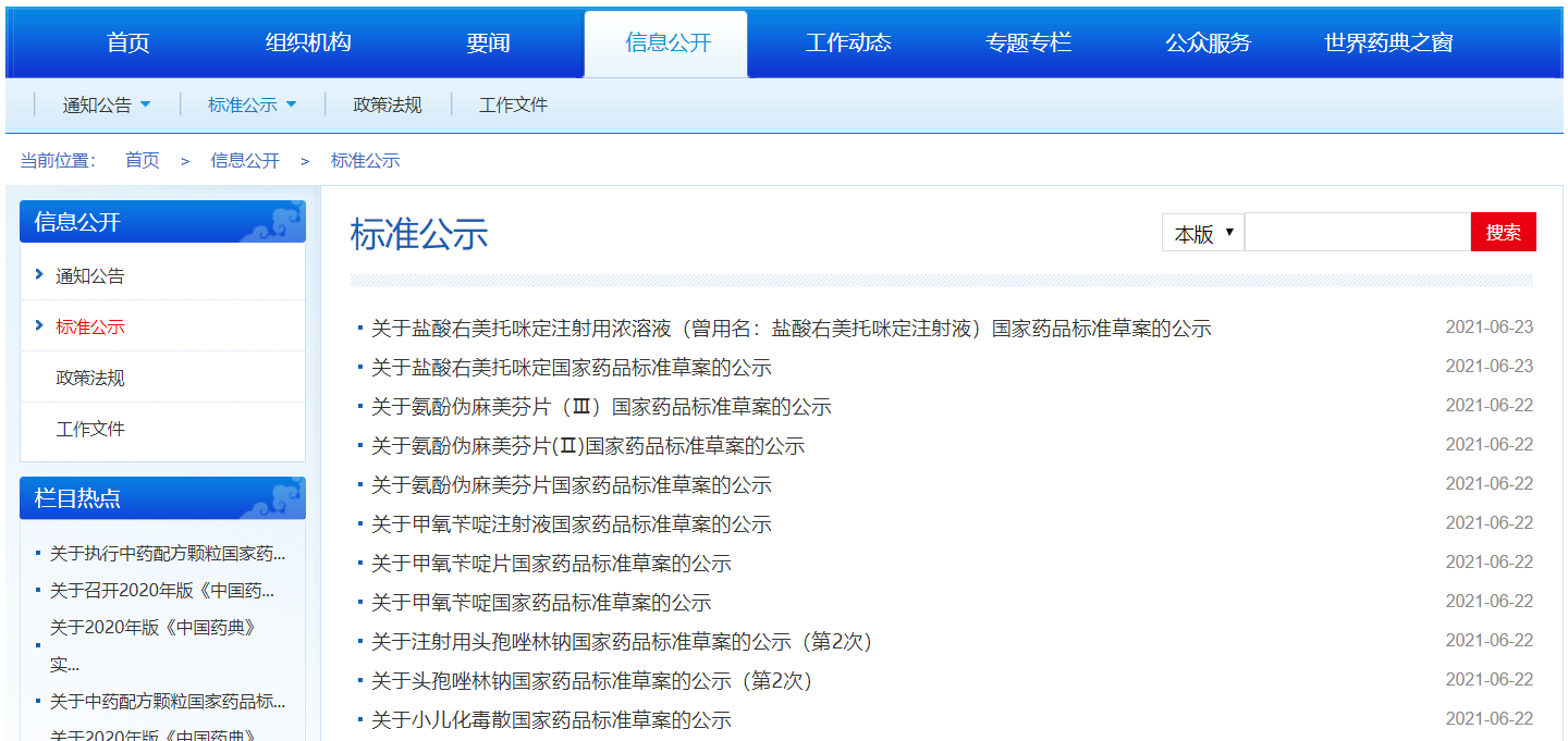 本周11種國家藥品標準草案的公示。