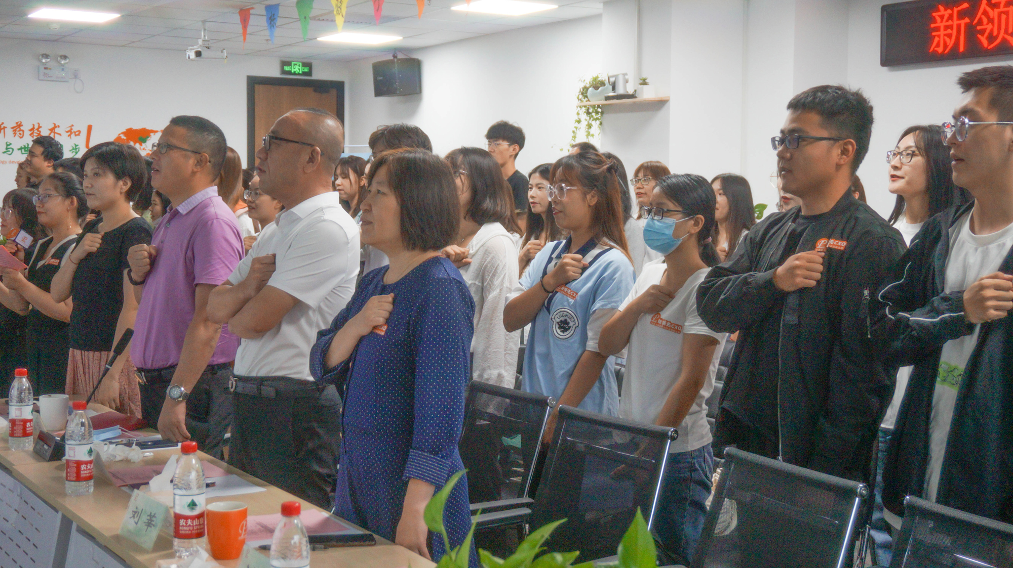 醫藥與人民生命健康息息相關,身為醫藥人,肩負醫藥興國的使命和責任,在新新領先人入職之際,董事長陶新華先生、總裁高世靜女士、常務副總裁劉昆先生攜公司高層領導和2021屆應屆畢業生共同宣讀醫藥人誓詞。