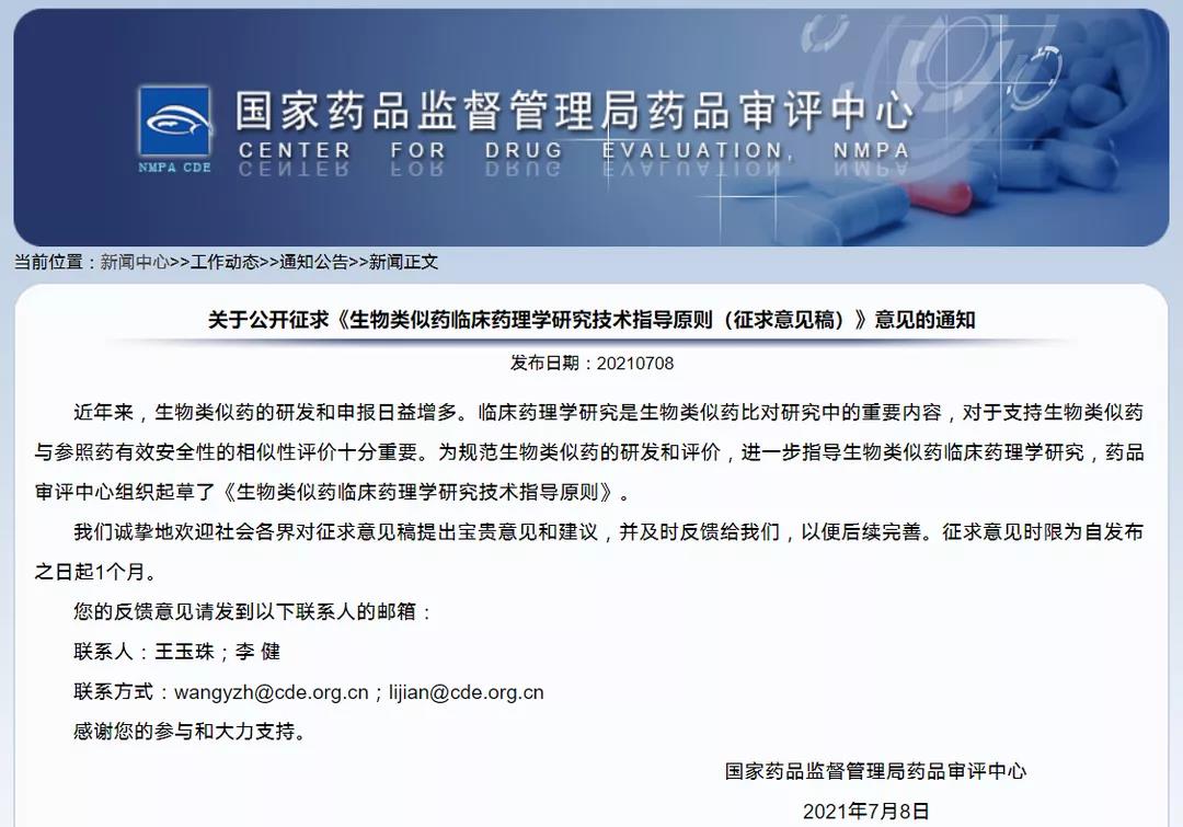 關(guān)于公開征求《生物類似藥臨床藥理學(xué)研究技術(shù)指導(dǎo)原則(征求意見稿)》意見的通知