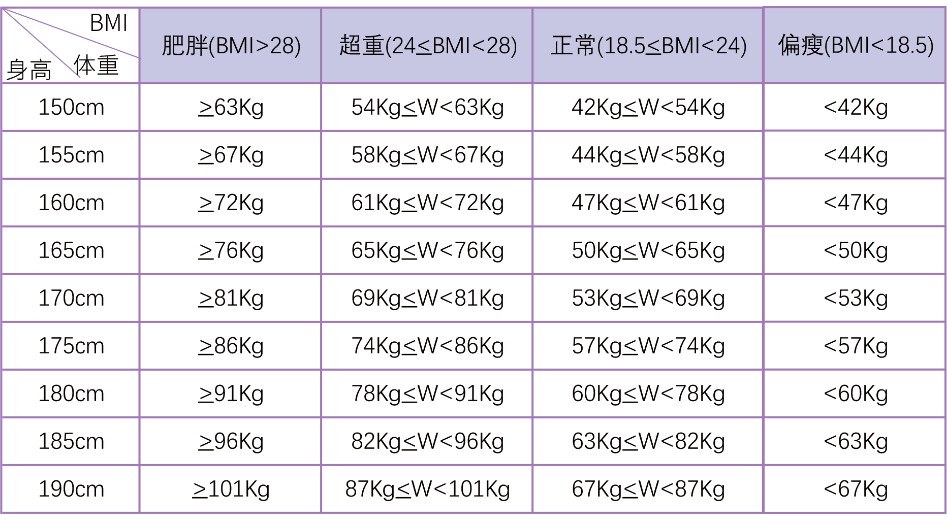 注:人們普遍通過體重指數(BMI)來判定個人肥胖標準,BMI=體重/身高2(kg/m2)。