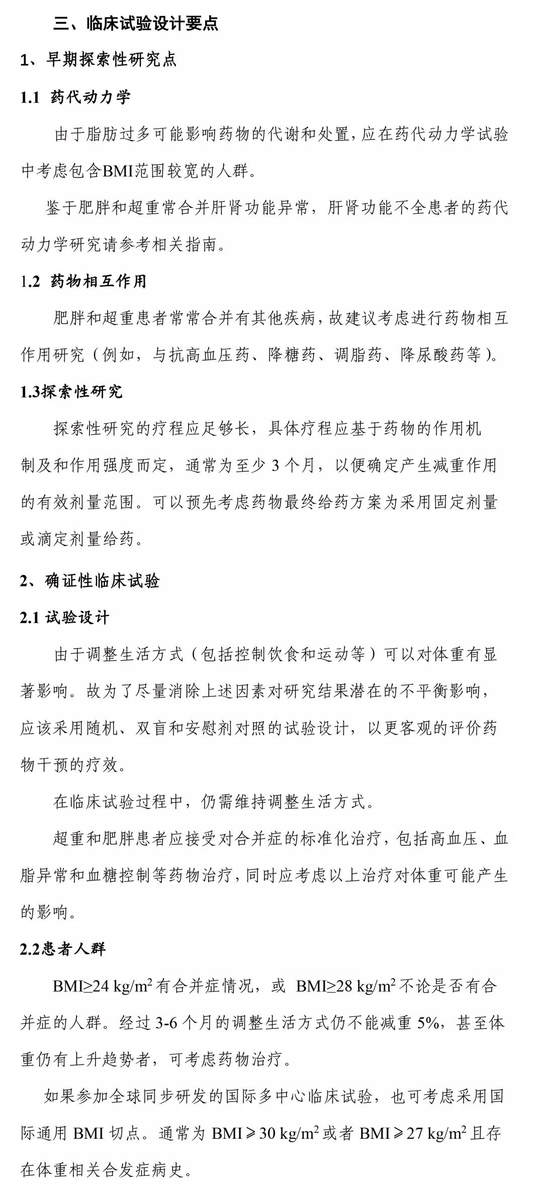 體重控制藥物臨床試驗設計要點如下: