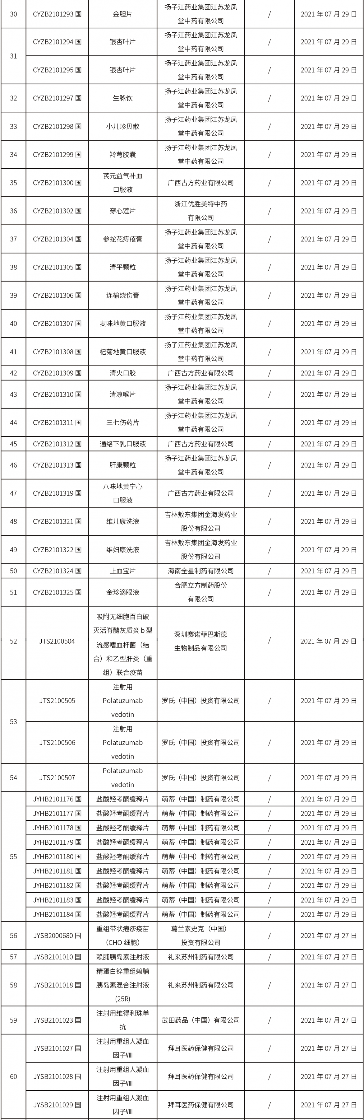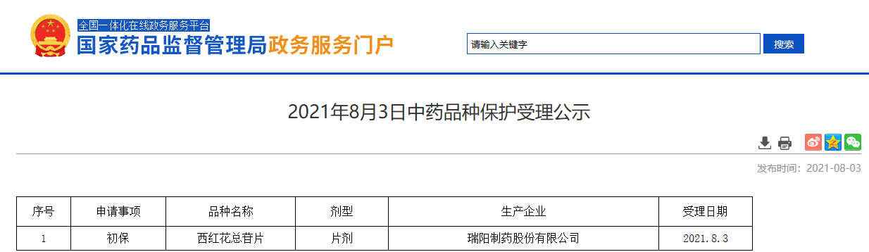 2021年8月3日中藥品種保護受理公示