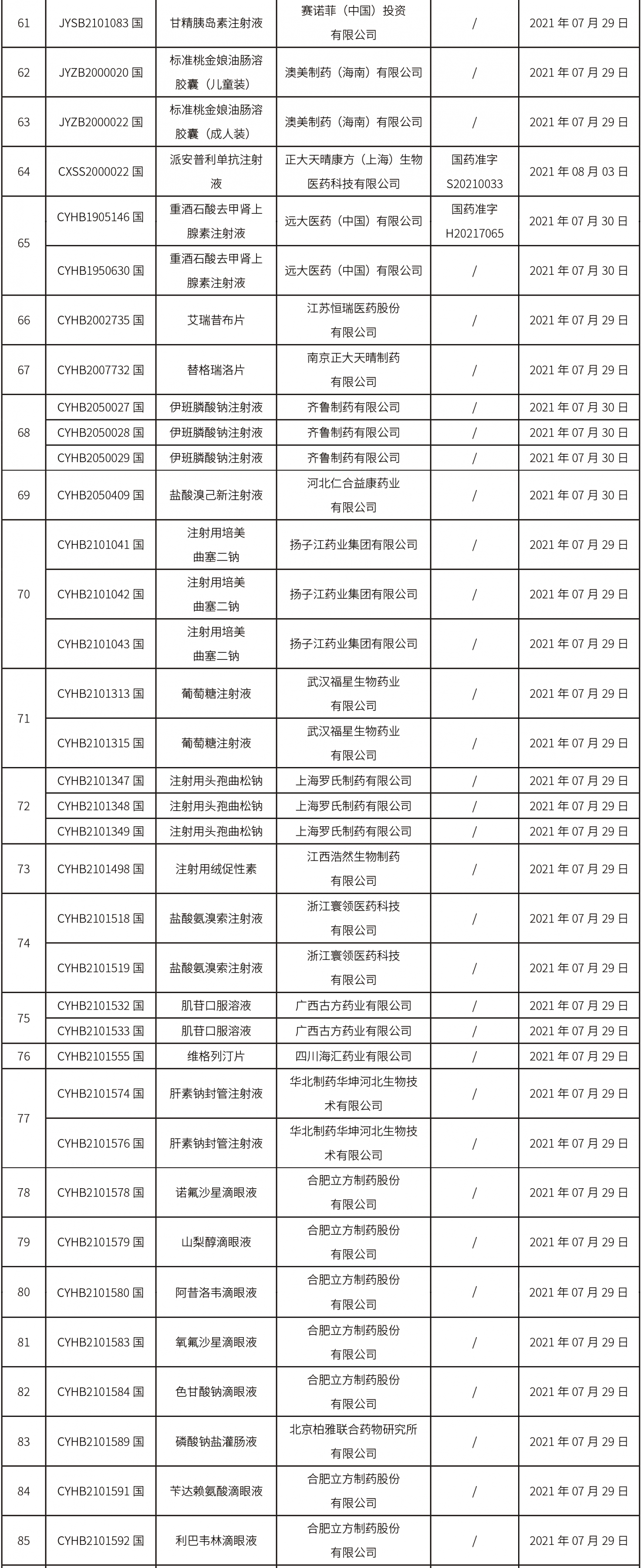 藥品注冊申請藥學研制和生產現場檢查任務信息公告(2021年第17號)