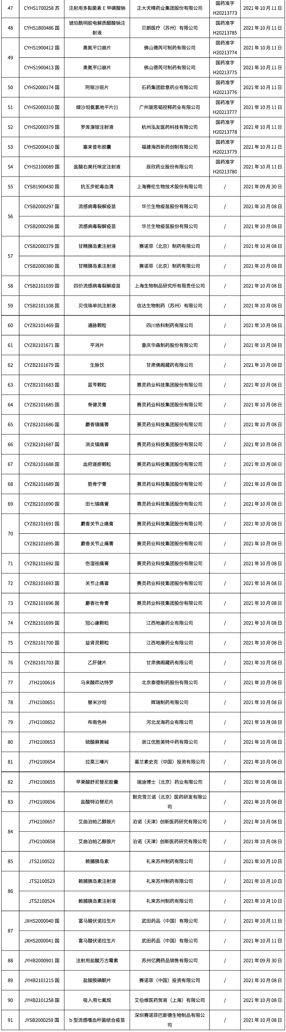 國家藥監(jiān)局關(guān)于發(fā)布仿制藥參比制劑目錄(第四十五批)的通告(2021年第80號(hào))