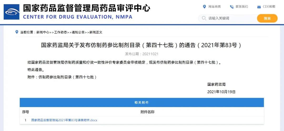 國(guó)家藥監(jiān)局關(guān)于發(fā)布仿制藥參比制劑目錄(第四十七批)的通告(2021年第83號(hào))