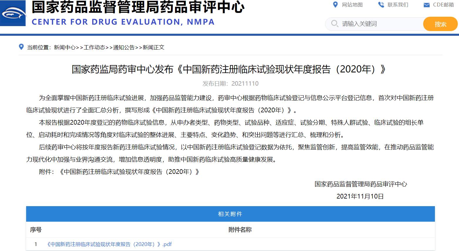 國家藥監(jiān)局藥審中心發(fā)布《中國新藥注冊(cè)臨床試驗(yàn)現(xiàn)狀年度報(bào)告(2020年)》