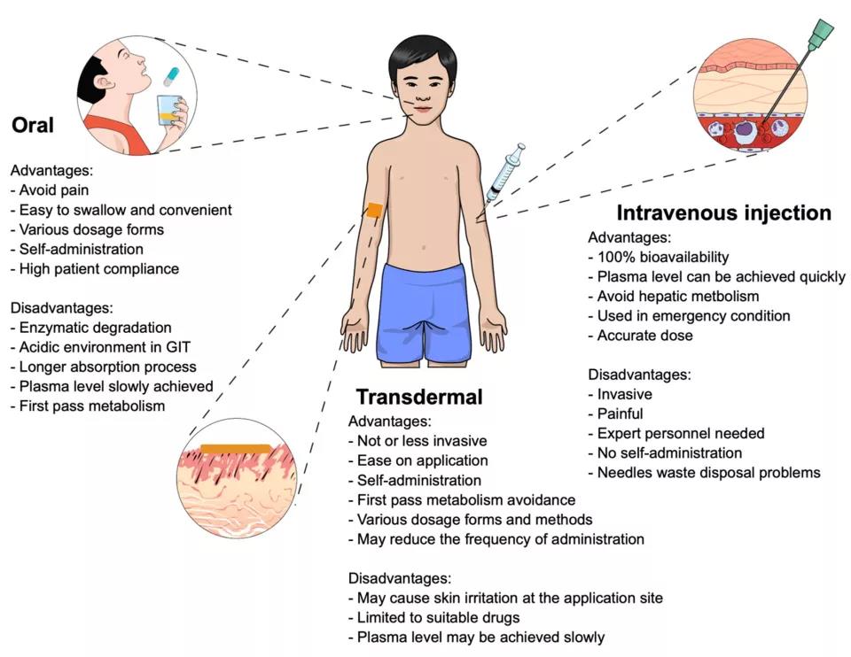 Figure2. 一般制劑不同給藥途徑優缺點比較