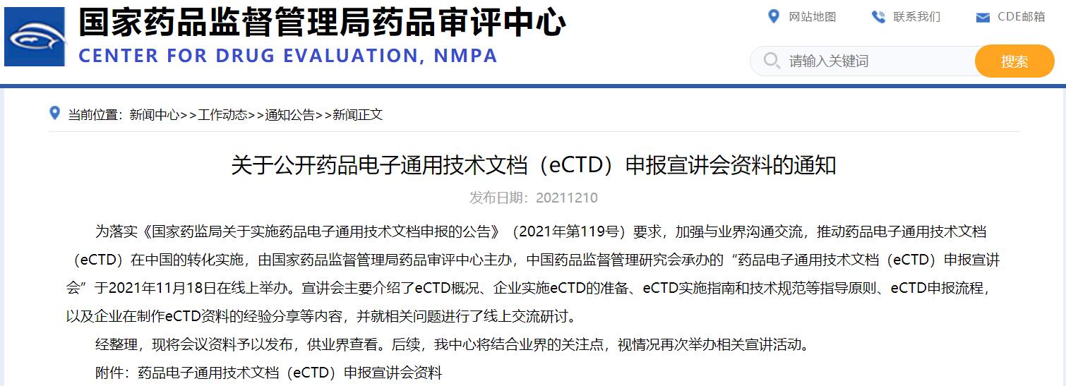 關于公開藥品電子通用技術文檔(eCTD)申報宣講會資料的通知