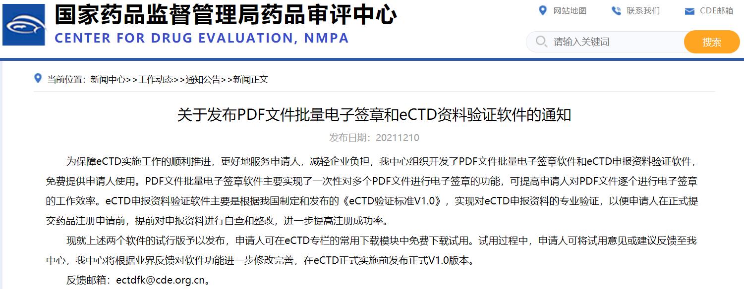 關于發布PDF文件批量電子簽章和eCTD資料驗證軟件的通知