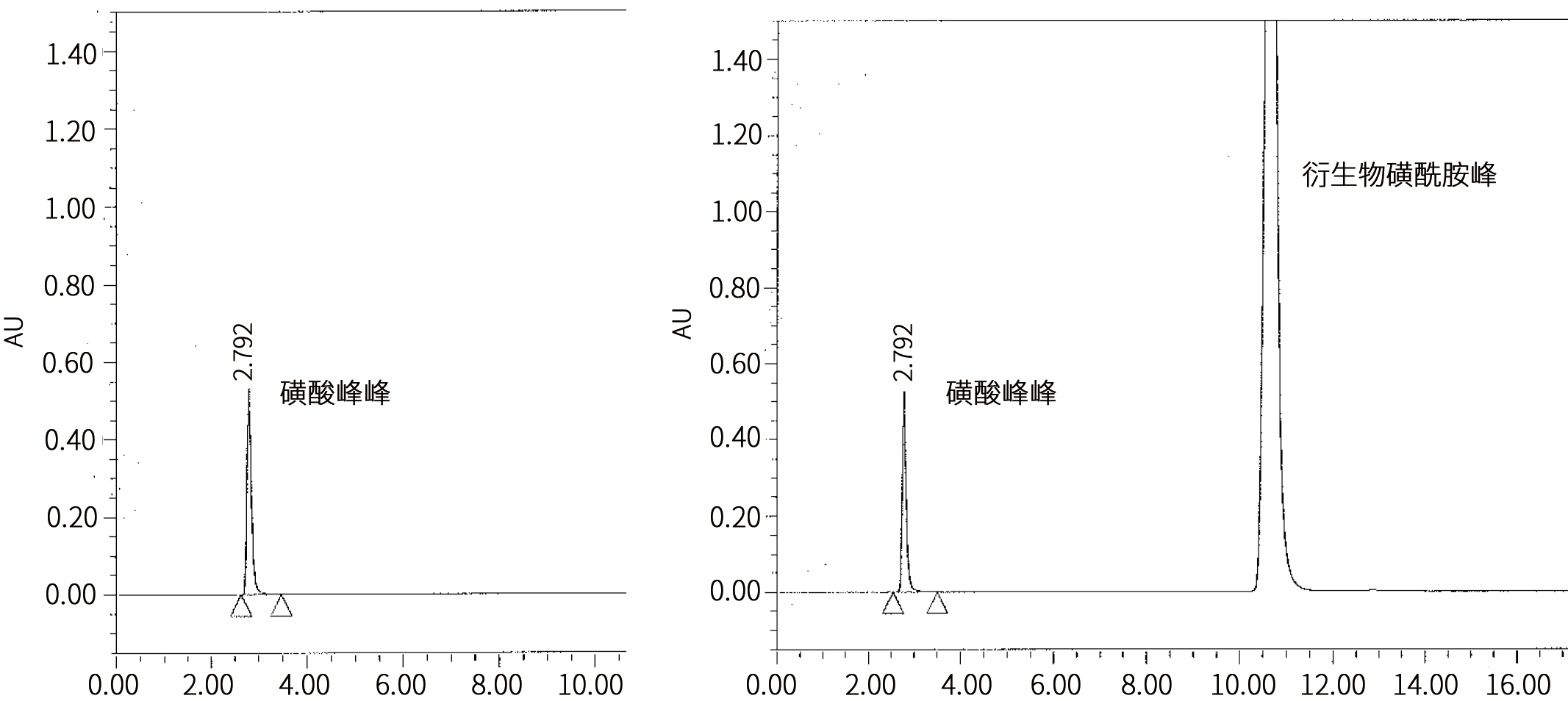磺酸類化合物極性大,在液相色譜中保留能力較弱,易受空白溶劑干擾;