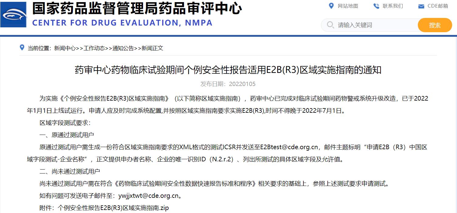藥審中心藥物臨床試驗期間個例安全性報告適用E2B(R3)區域實施指南的通知