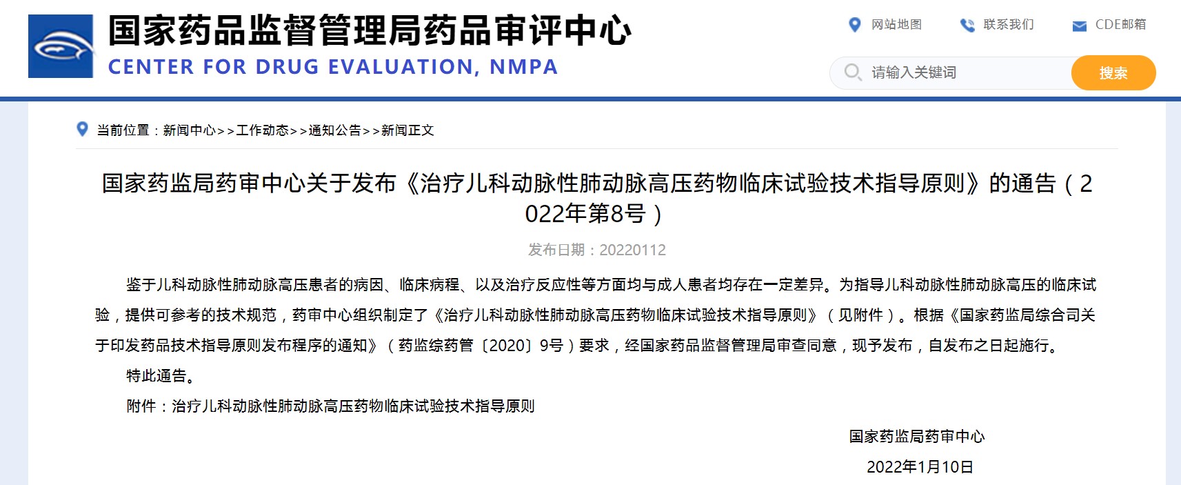 國家藥監局藥審中心關于發布《治療兒科動脈性肺動脈高壓藥物臨床試驗技術指導原則》的通告(2022年第8號)