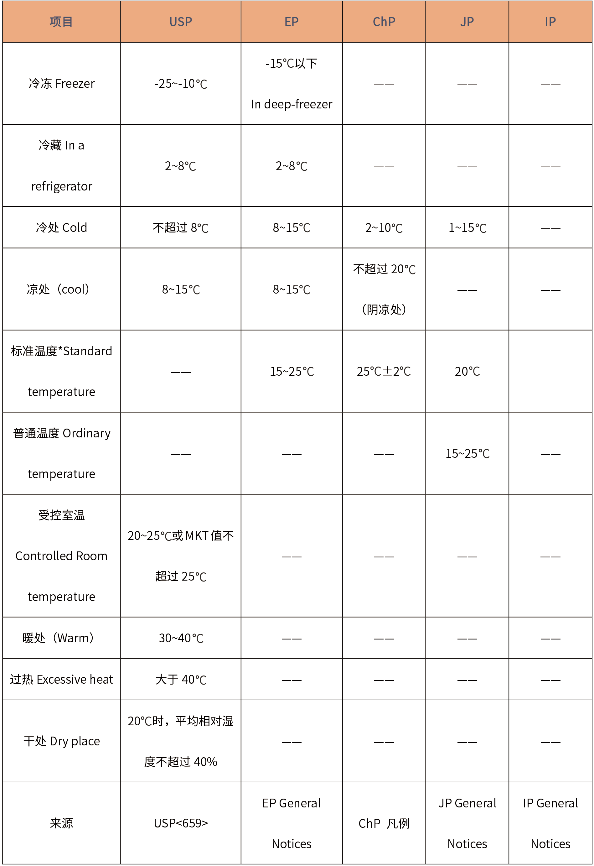 各國(guó)藥典對(duì)于貯藏名詞術(shù)語(yǔ)的解釋: