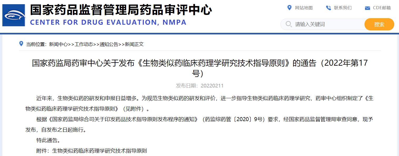 國家藥監局藥審中心關于發布《生物類似藥臨床藥理學研究技術指導原則》的通告(2022年第17號)