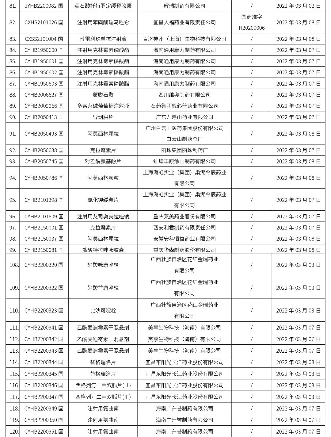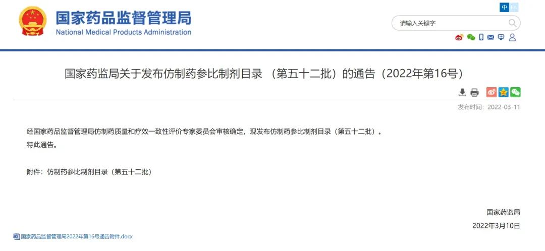 國家藥監局關于發布仿制藥參比制劑目錄 (第五十二批)的通告(2022年第16號)