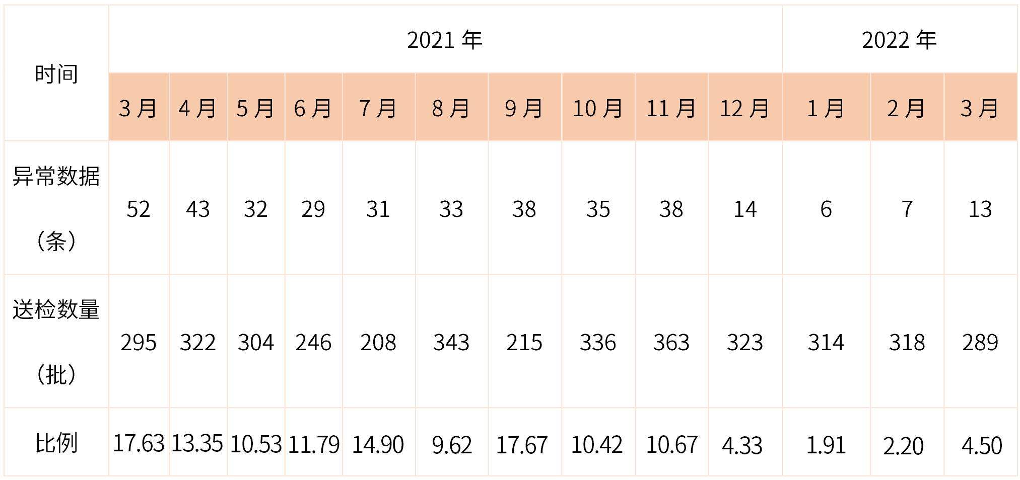 比例=異常數(shù)據(jù)/送檢數(shù)量