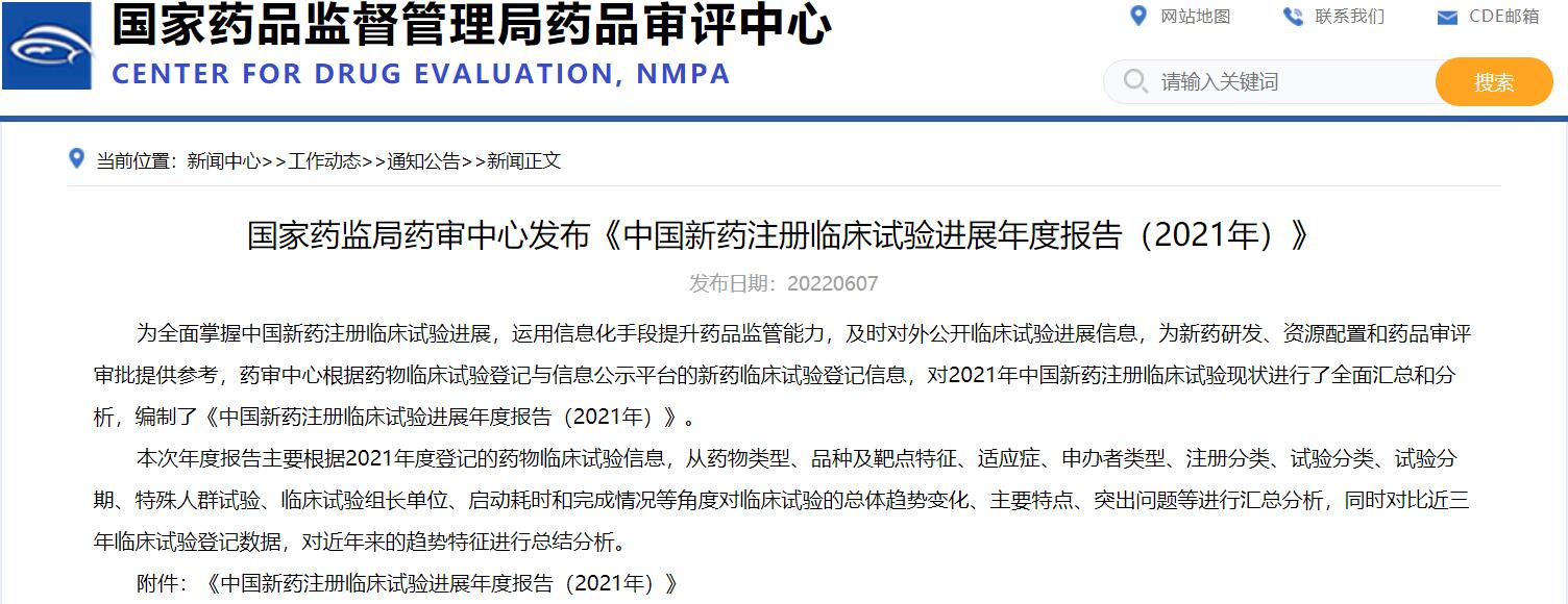 國家藥監(jiān)局藥審中心發(fā)布《中國新藥注冊臨床試驗(yàn)進(jìn)展年度報告(2021年)》