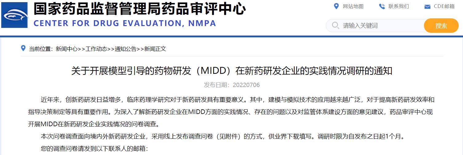 關于開展模型引導的藥物研發(MIDD)在新藥研發企業的實踐情況調研的通知