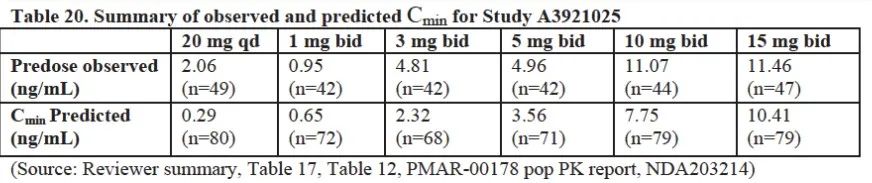 ·多劑量研究中(連續服用5天),托法替布緩釋片11mg(qd)與托法替布片5mg(bid),開展BE試驗。