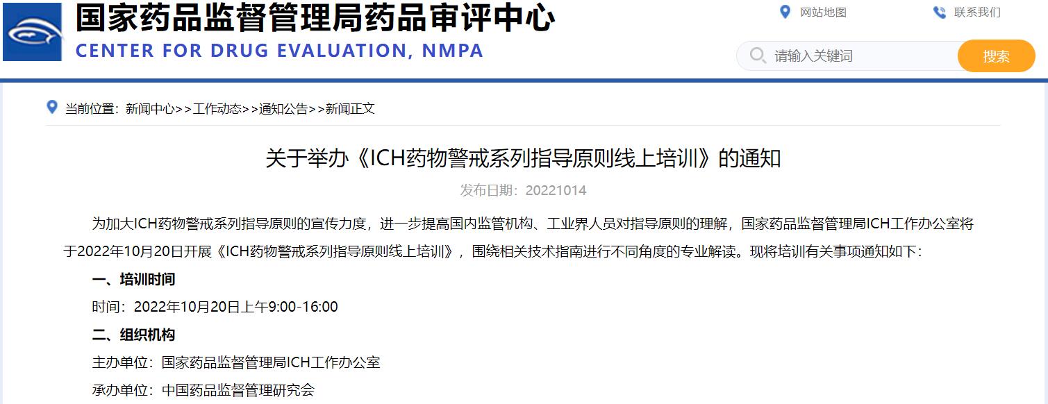 關于舉辦《ICH藥物警戒系列指導原則線上培訓》的通知
