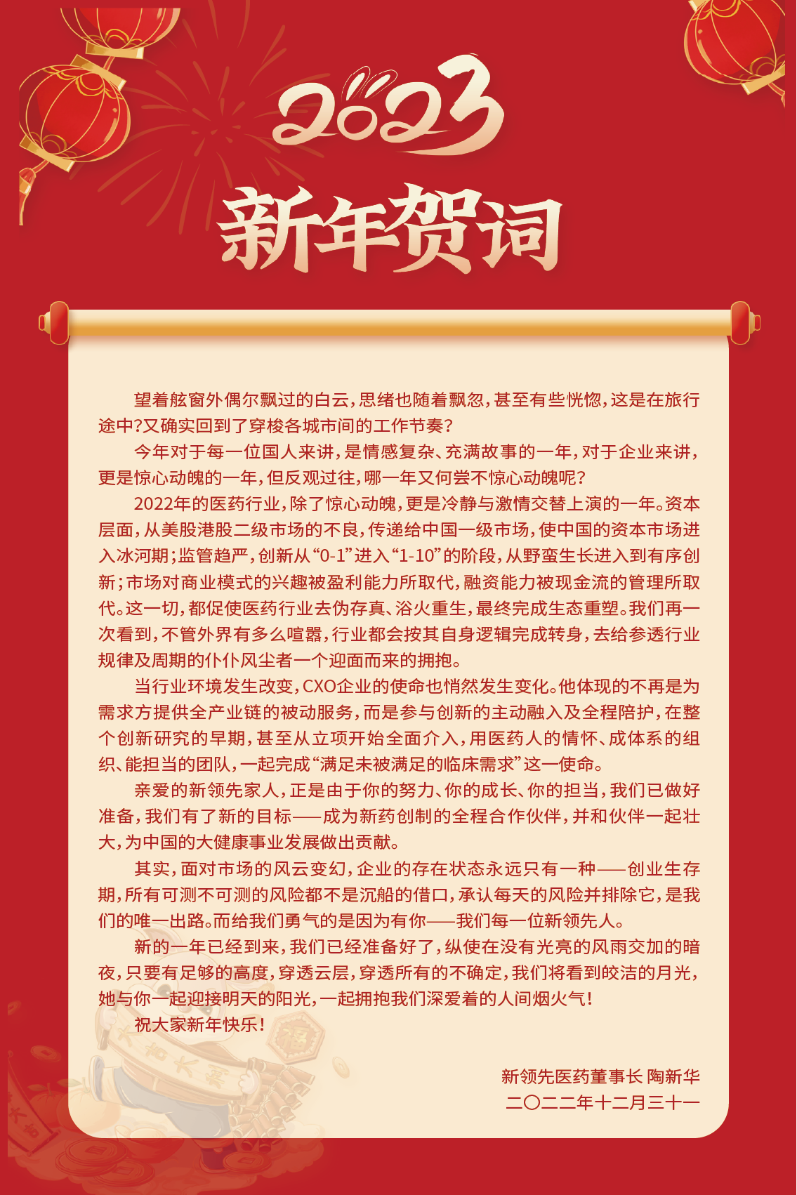 新領先醫藥二〇二三年新年賀詞